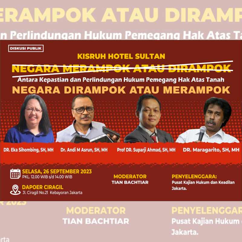 2 tanggapan untuk “Ramai! Publik Menolak Perampasan Hotel Sultan Dirampas, Kemensesneg Mengatasnamakan Negara?”